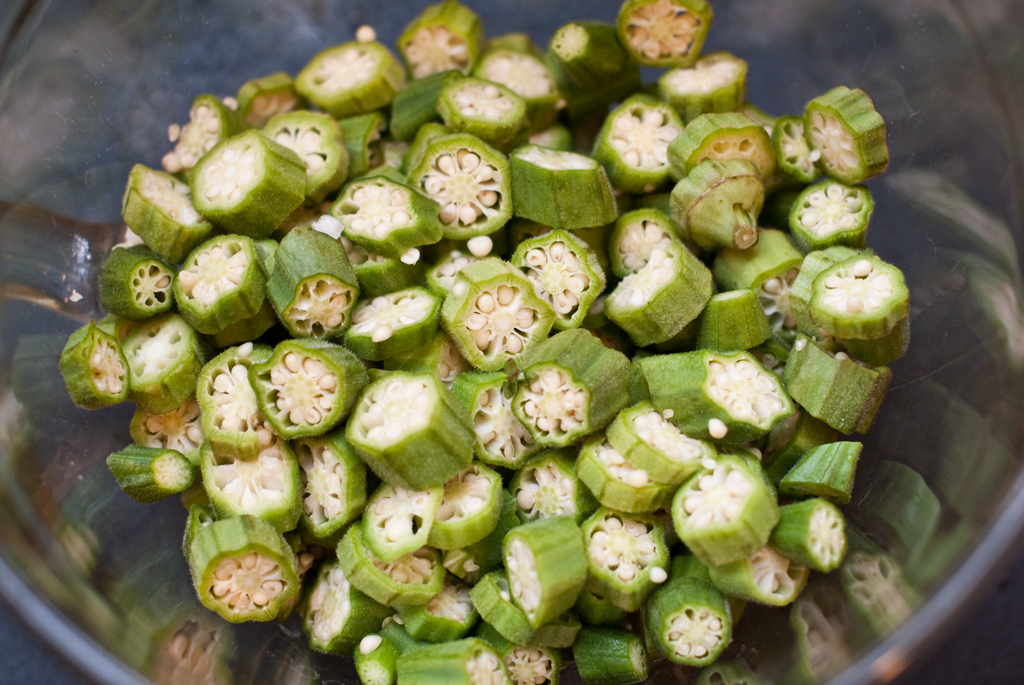 Original recipe for Okra and Black-Eye Pea Saute from Tanya Holland