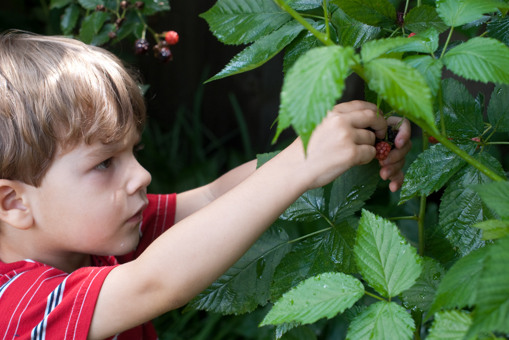 Our neighbor has six bushes full of blackberries and the kids love going over to pick them. When we leave, their hands are purple from all the juices.