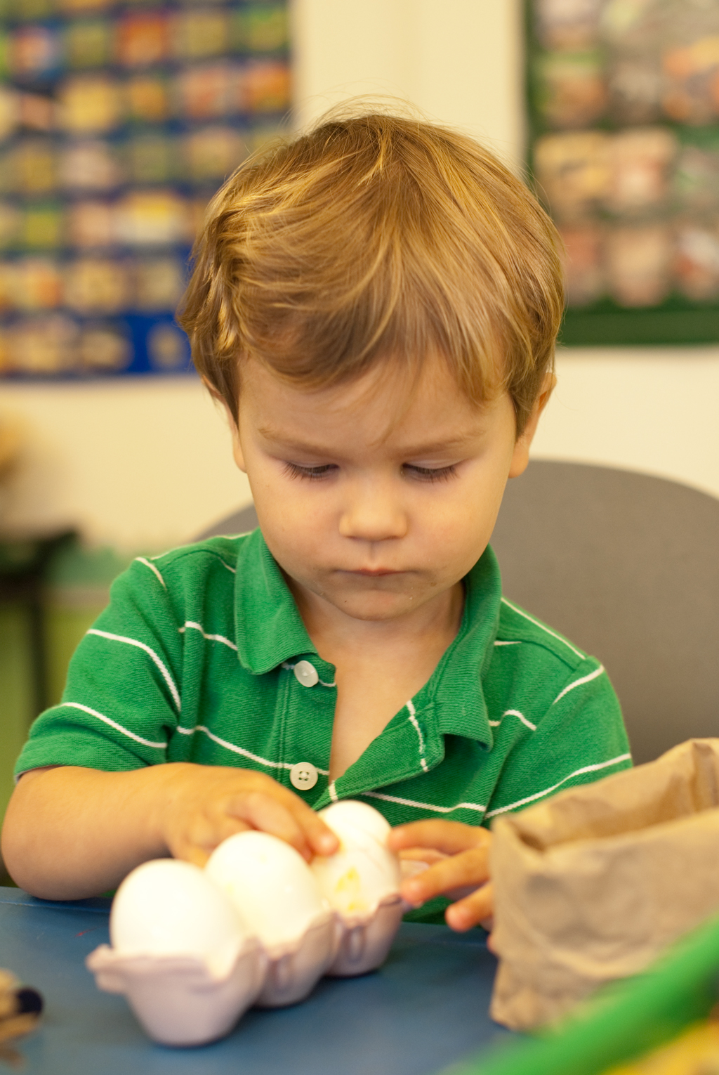 Crayons do not absorb the dyes so your kids can drawn patterns on the eggs while you are preparing the dye solutions. Do not use crayons on the eggs dyed in turmeric.